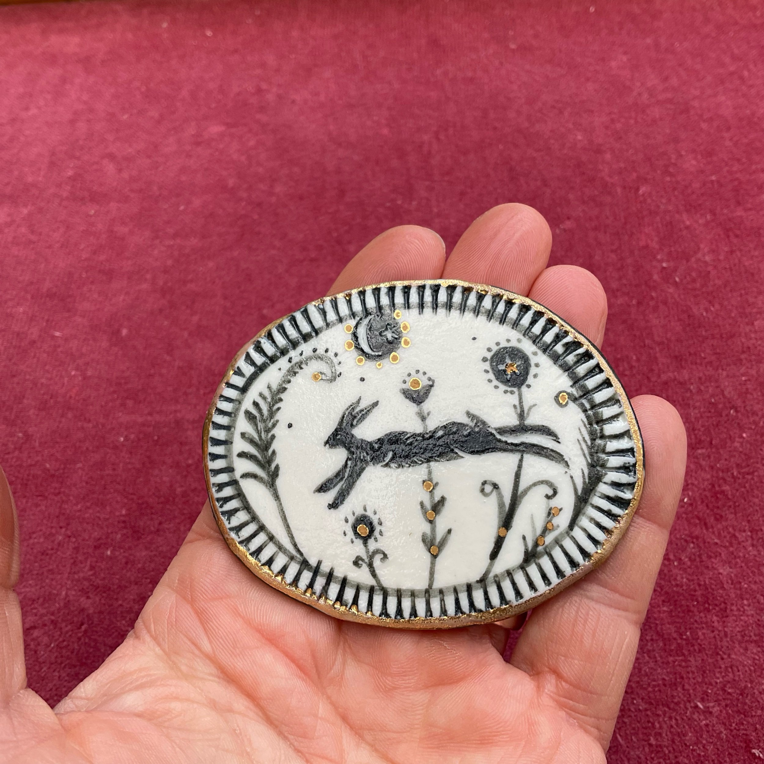 Shop › Starry hare brooch for Georgie Image 1 of 1 Starry hare brooch for Georgie £65.00 sold out Sold Out Added!