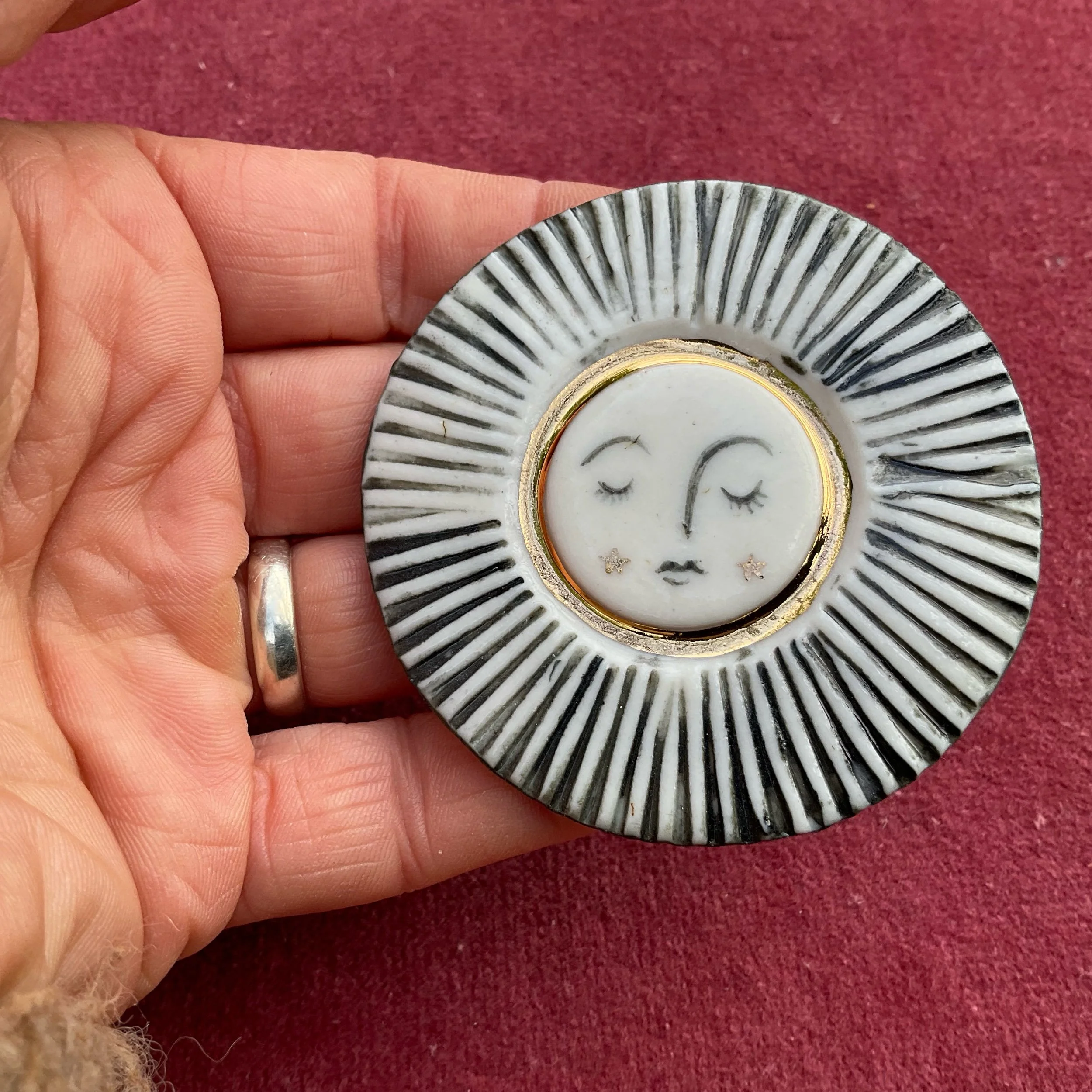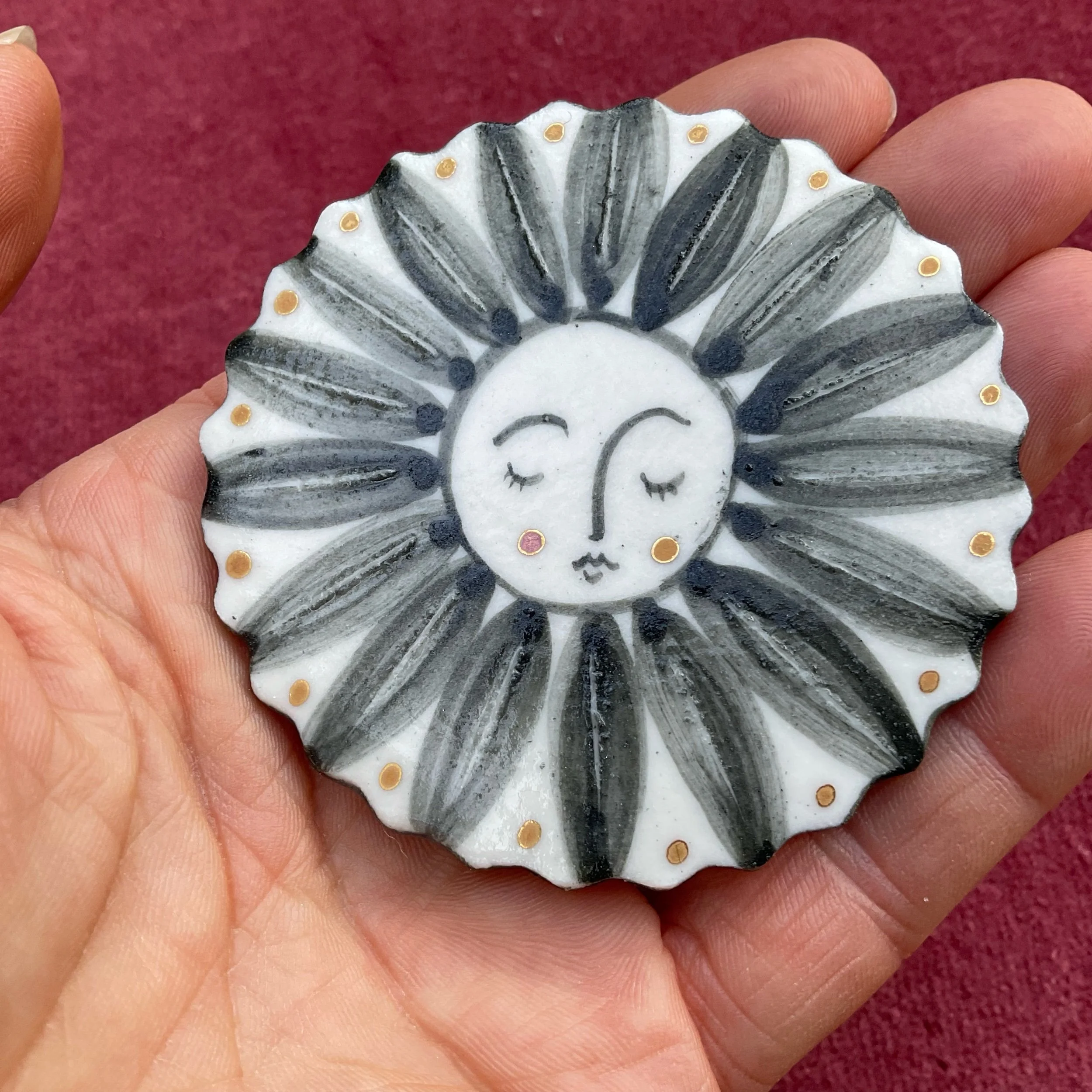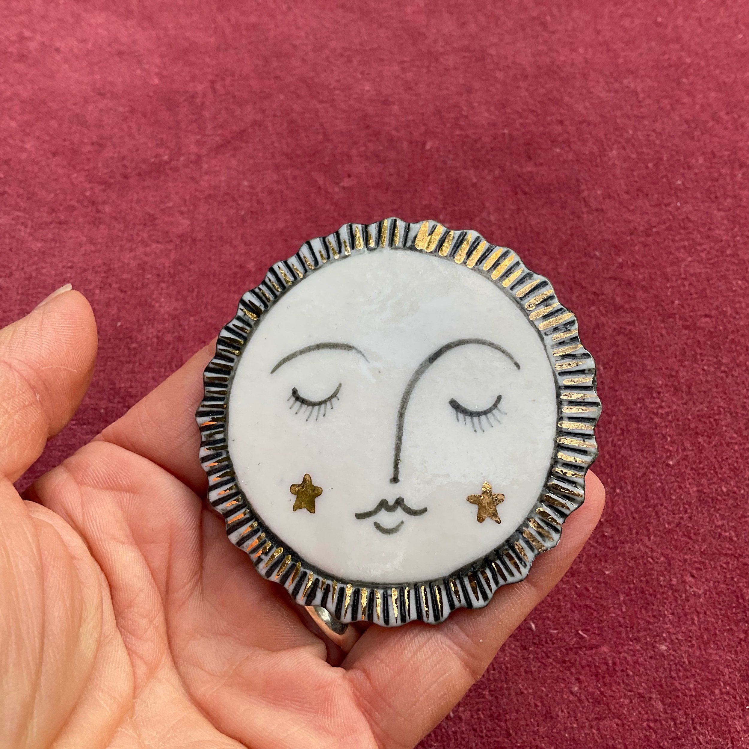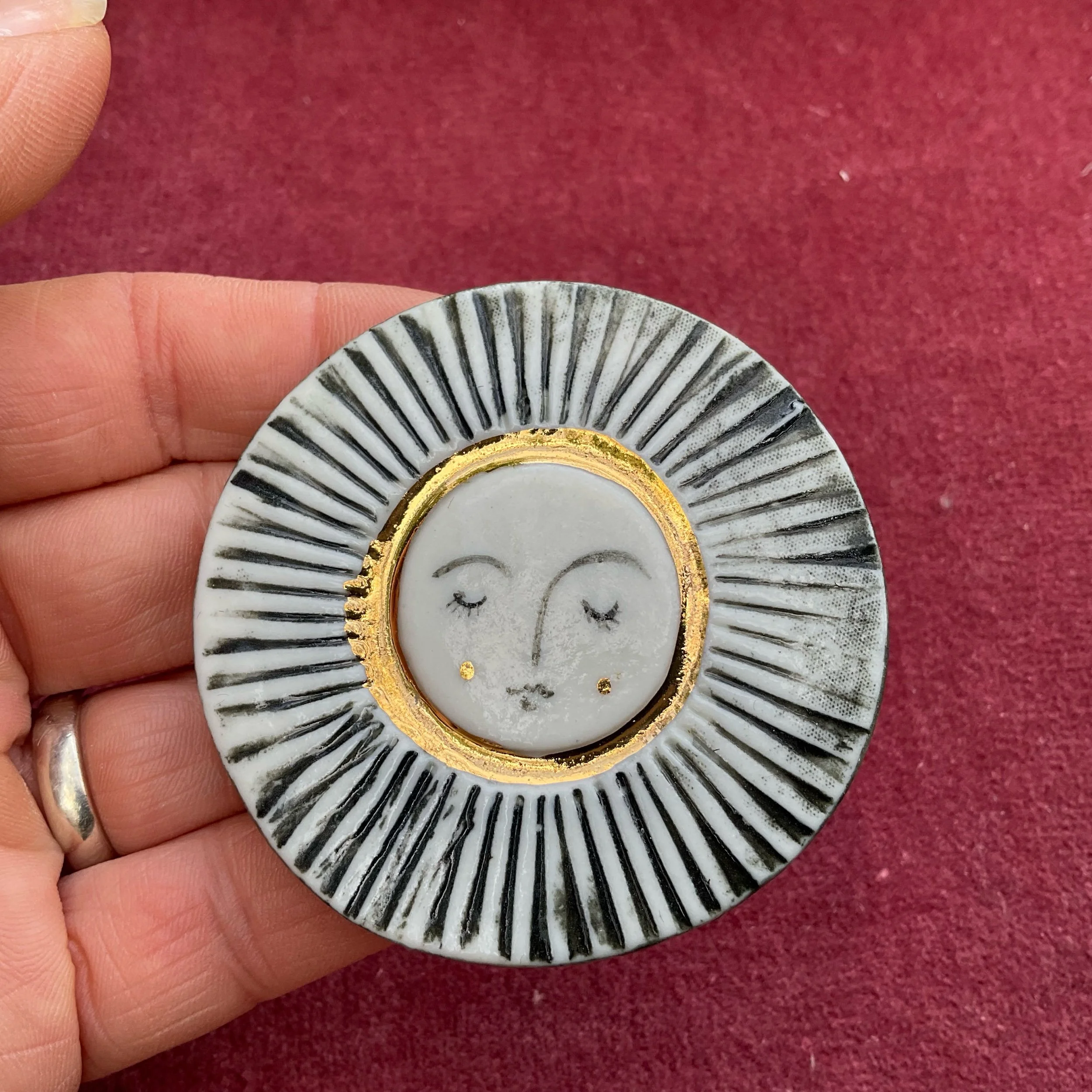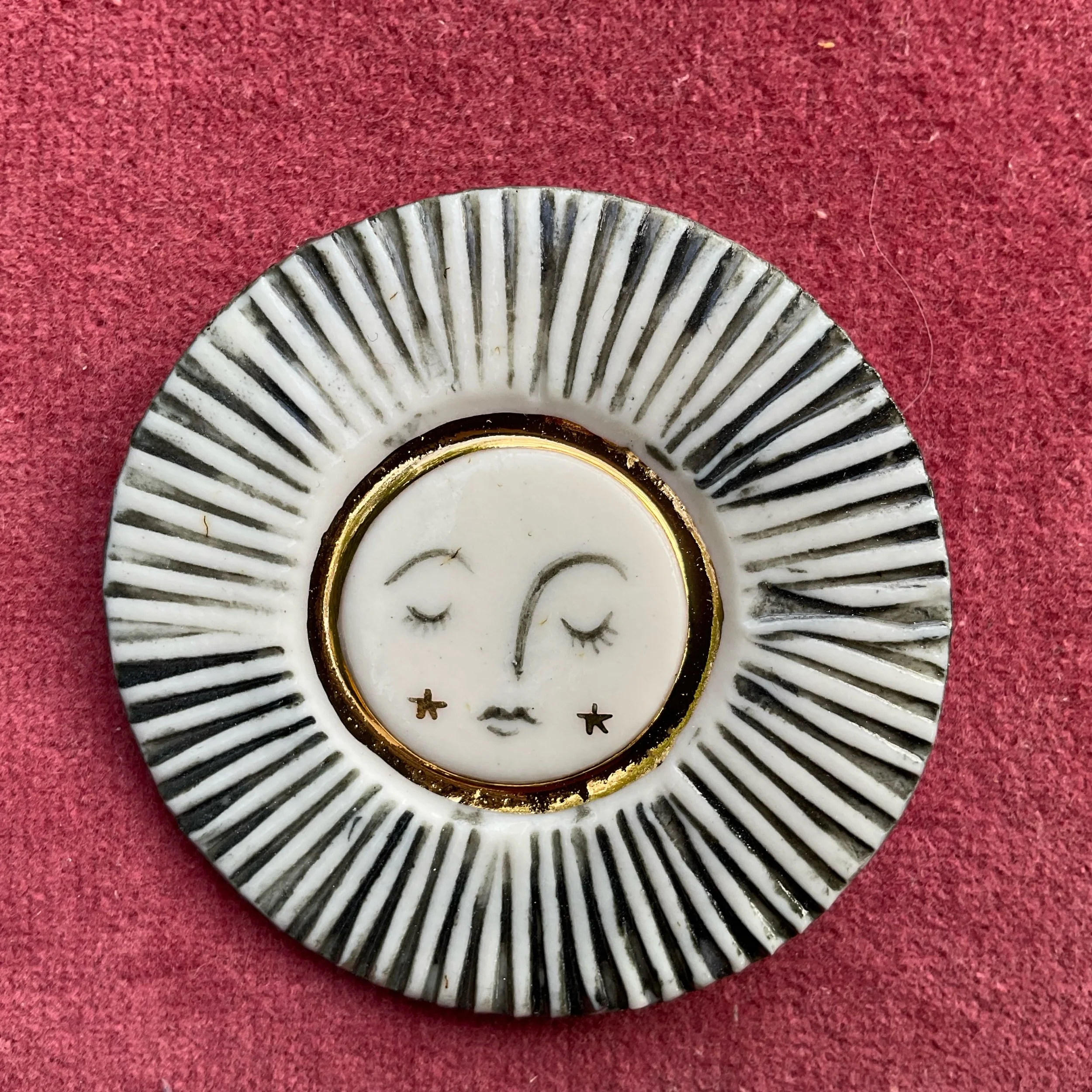 Lovely star brooch with slip and gold lustre decoration. Handmade in porcelain.