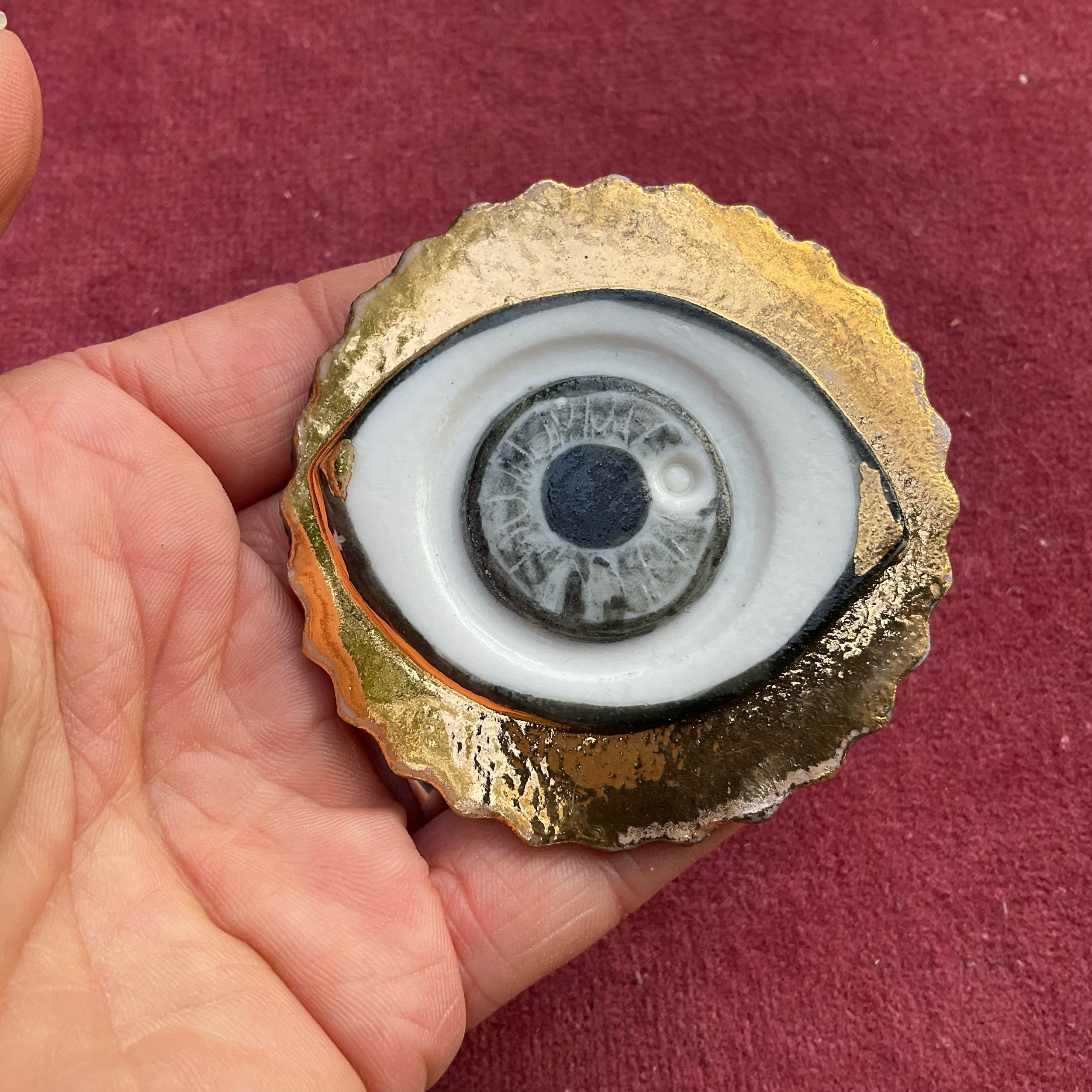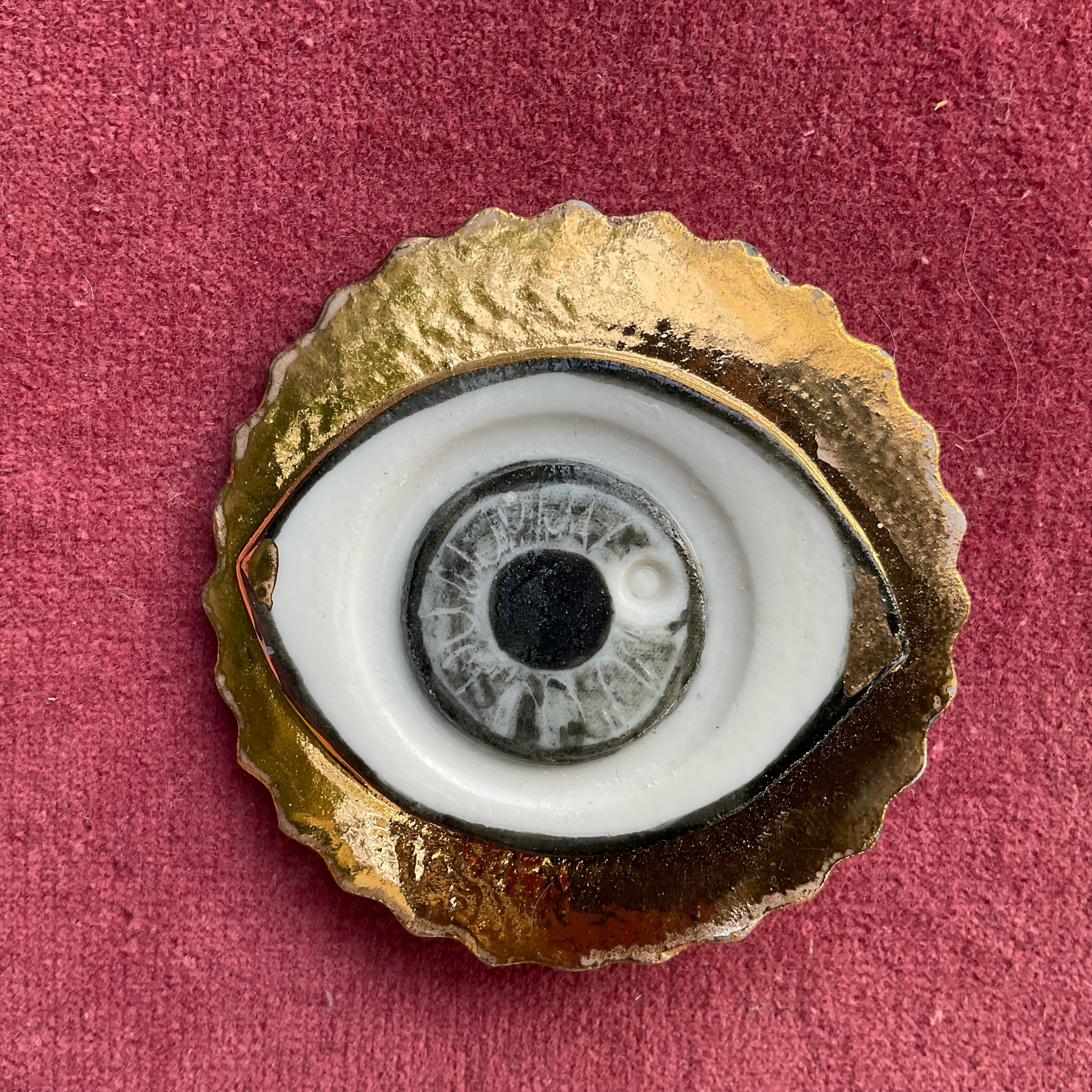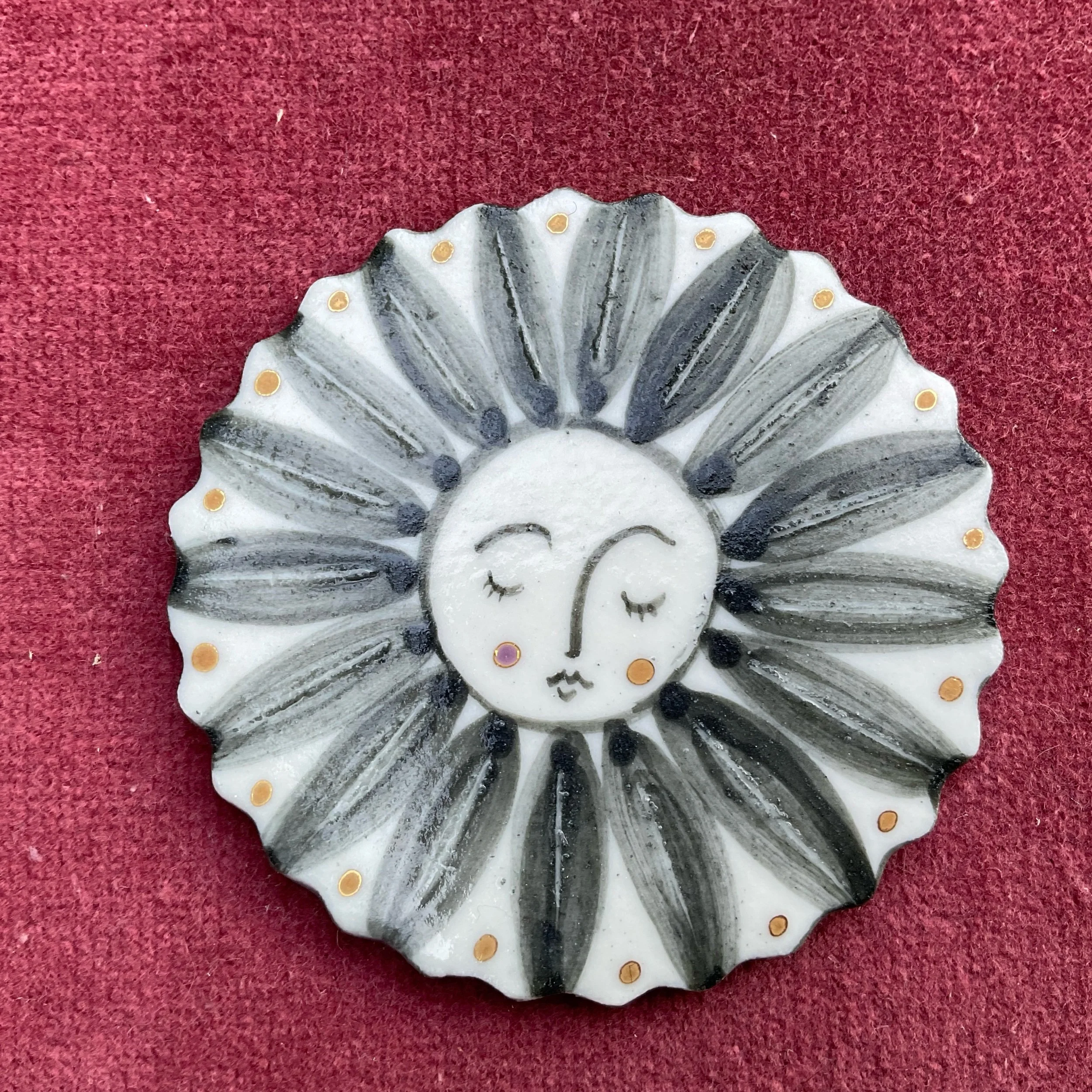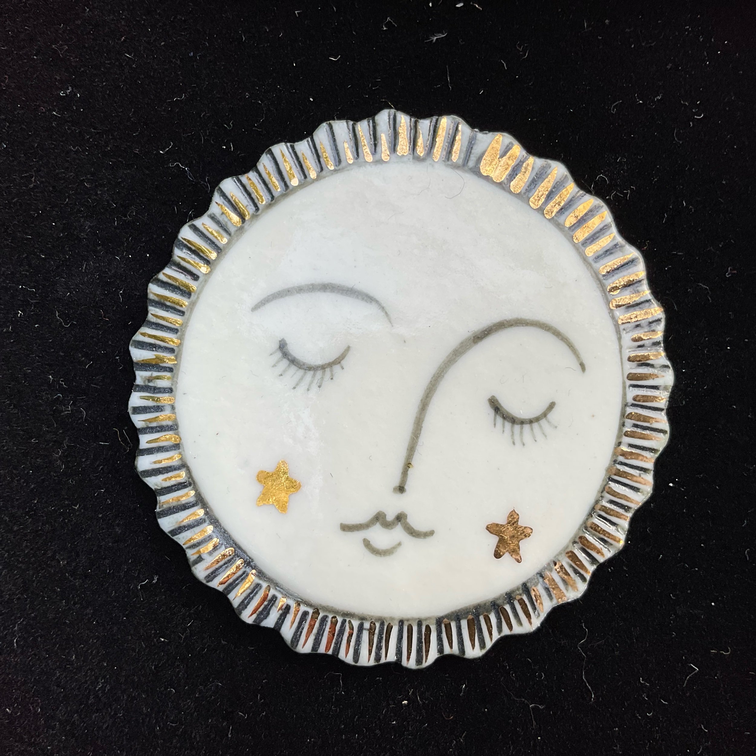 Lovely star brooch with slip and gold lustre decoration. Handmade in porcelain.