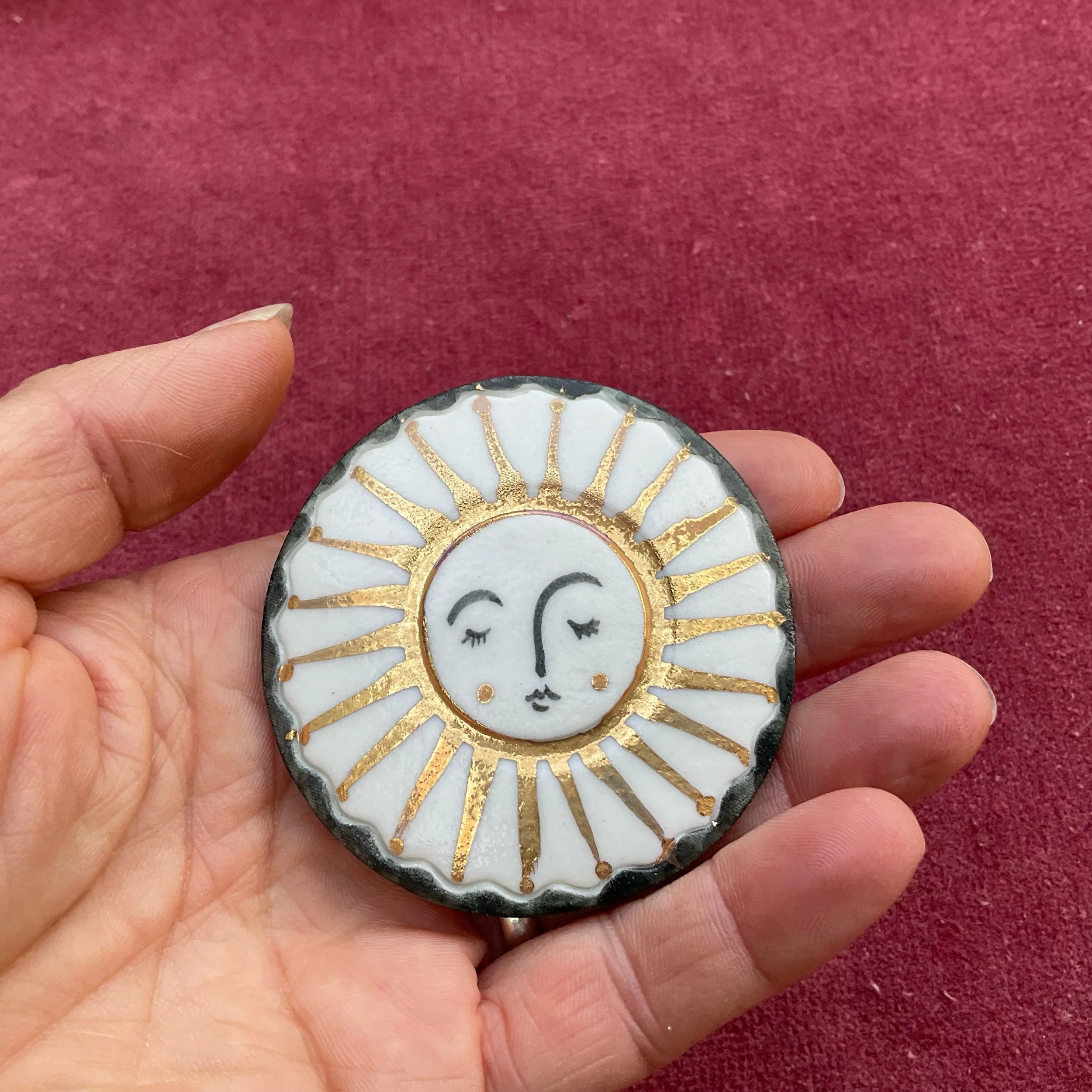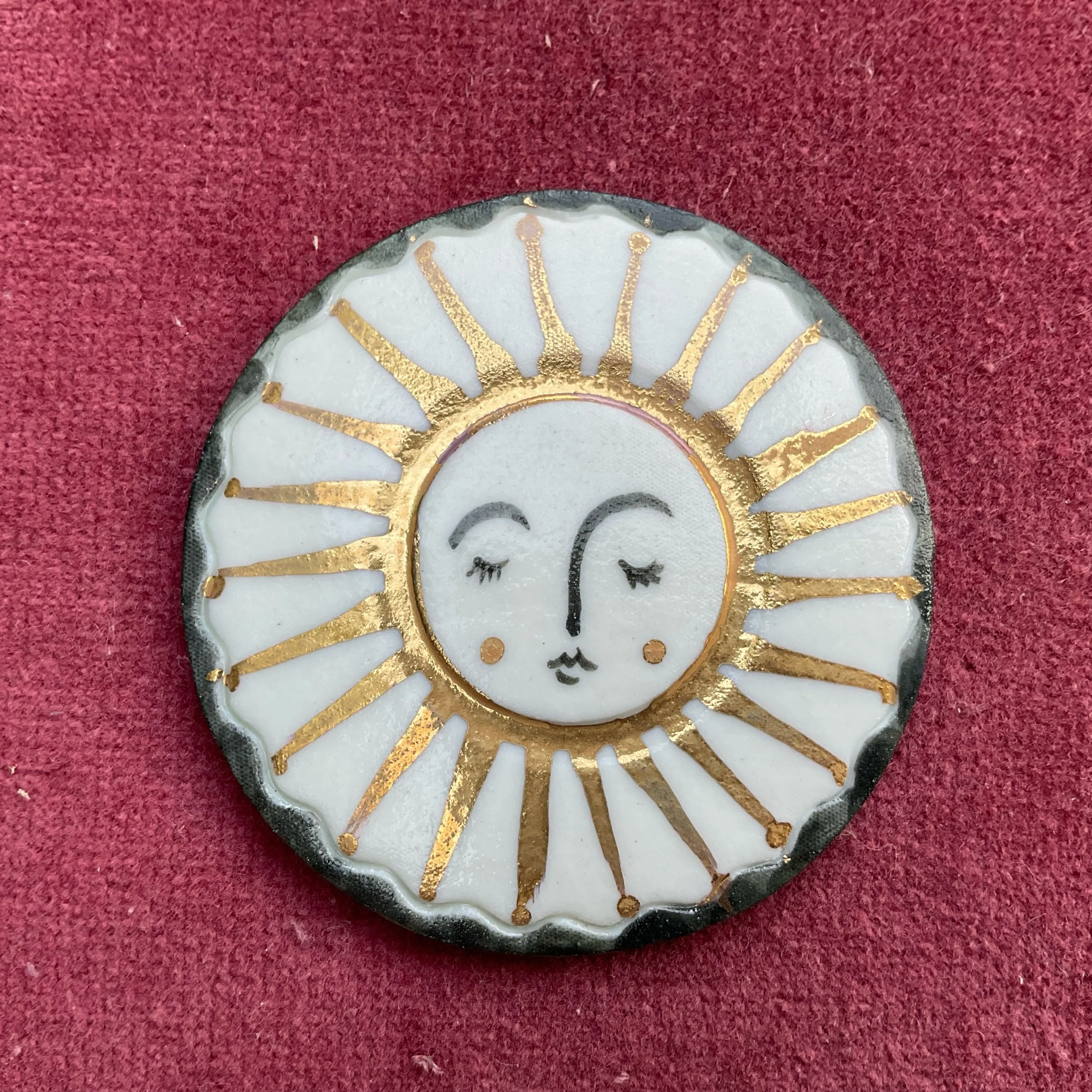 Porcelain sun brooch